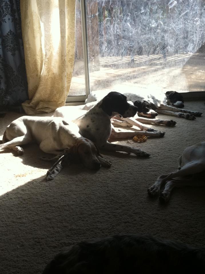 Today, all four of the Pointer girls decided that the sunbeam was THE place to be….