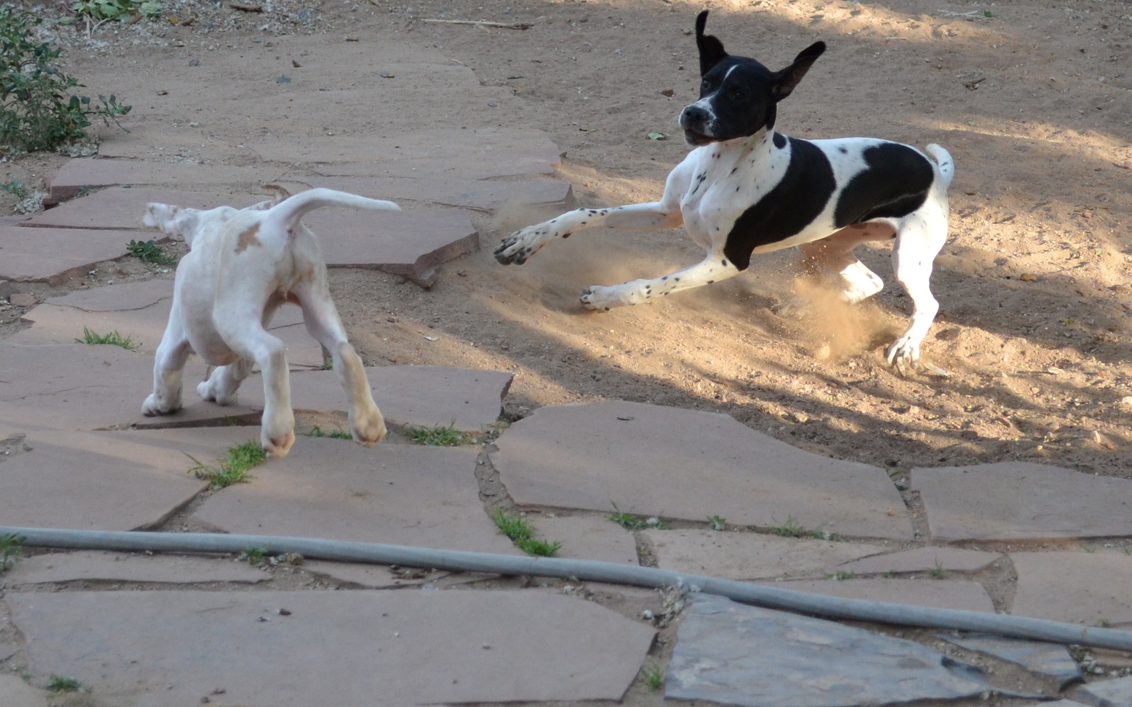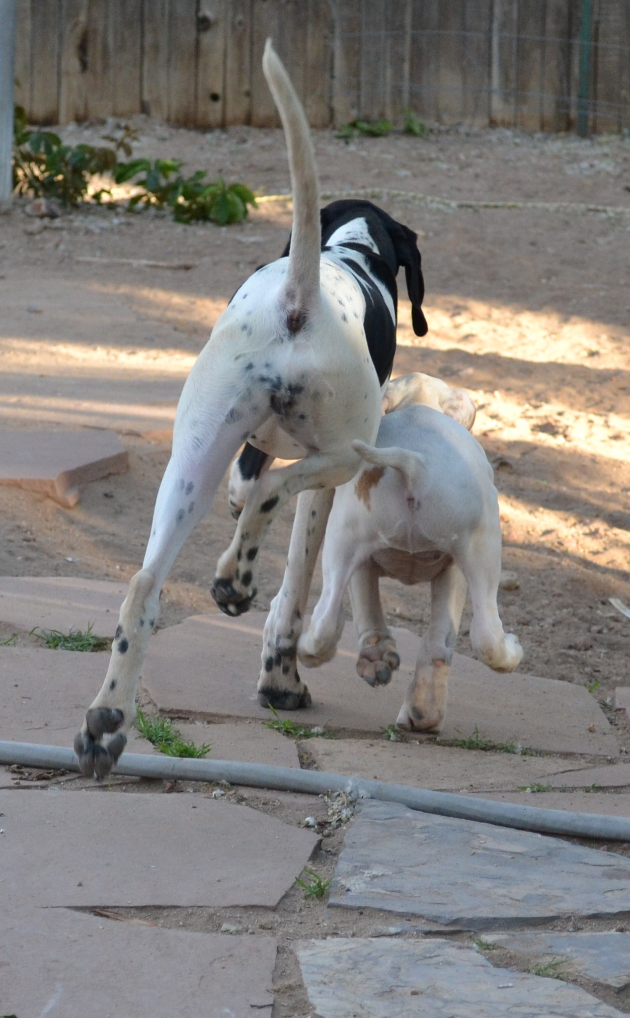 When I was doing the photo shoot in the backyard the other day when Camille got here and I was taking her picture, we had Puzzle out running around with us as well. These two puppies LOVE to play, and Camille fits in well around here, obviously…. I got a few decent shots of the two of them enjoying their Pointer Puppy Playtime. I really need to get the camera out more often and take photos of the dogs just being dogs around the house…feels like I’ve had no time lately!!