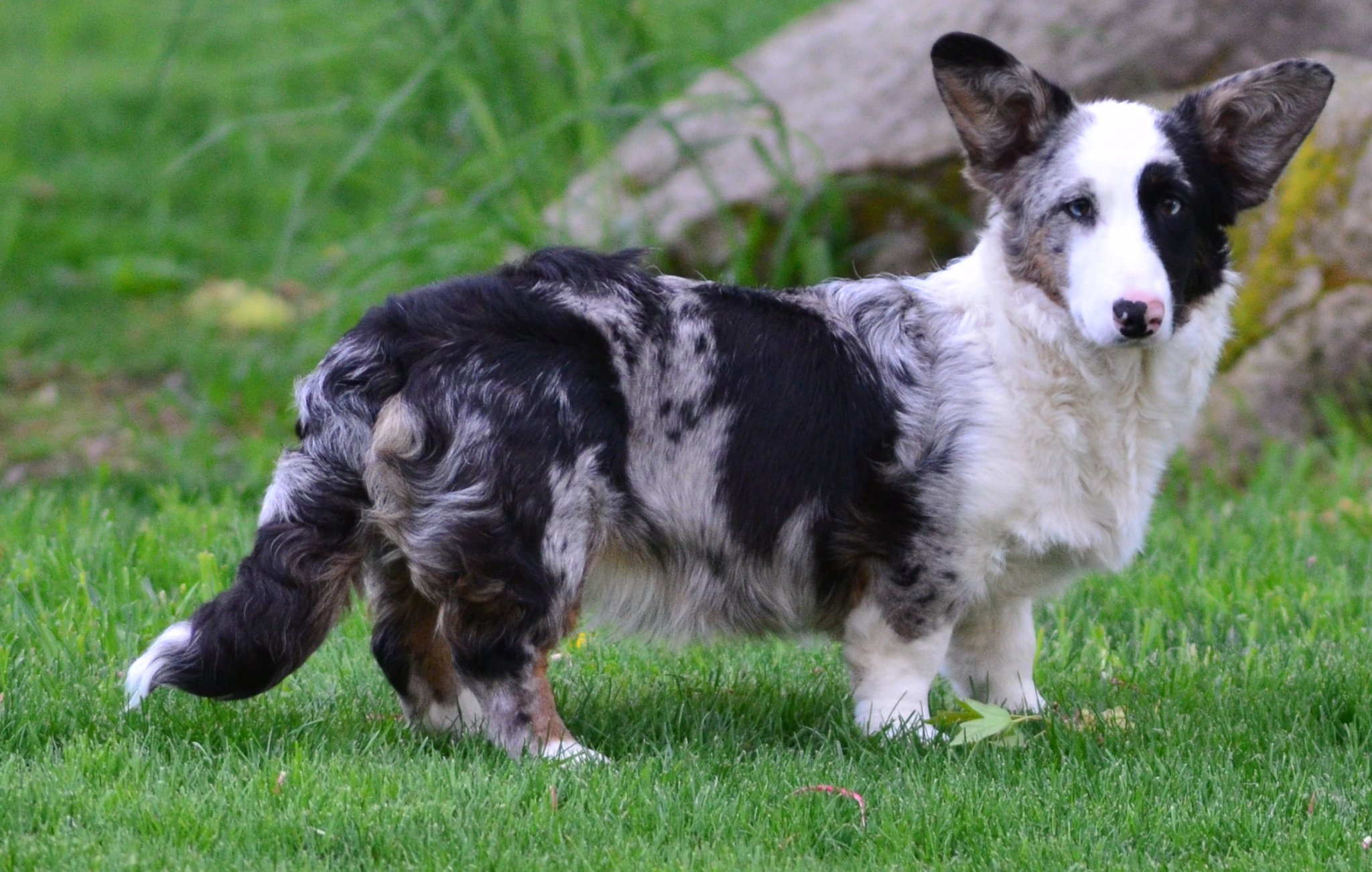 Widget (Widgie…Widgie-bo…Possum…she has been here for just a few days and already has a ton of nick names! LOL) flew to us on Sunday from Kim and Mark of Samhain Cardigans in WA…a new blue child to play with, a new Cardi girl for Domi to love. Pretty girl has already fallen in love with Brian and become “his” dog…funny I guess how certain dogs just know when someone needs something, since she has fallen right in rhythm with him, and its pretty amazing to watch.
