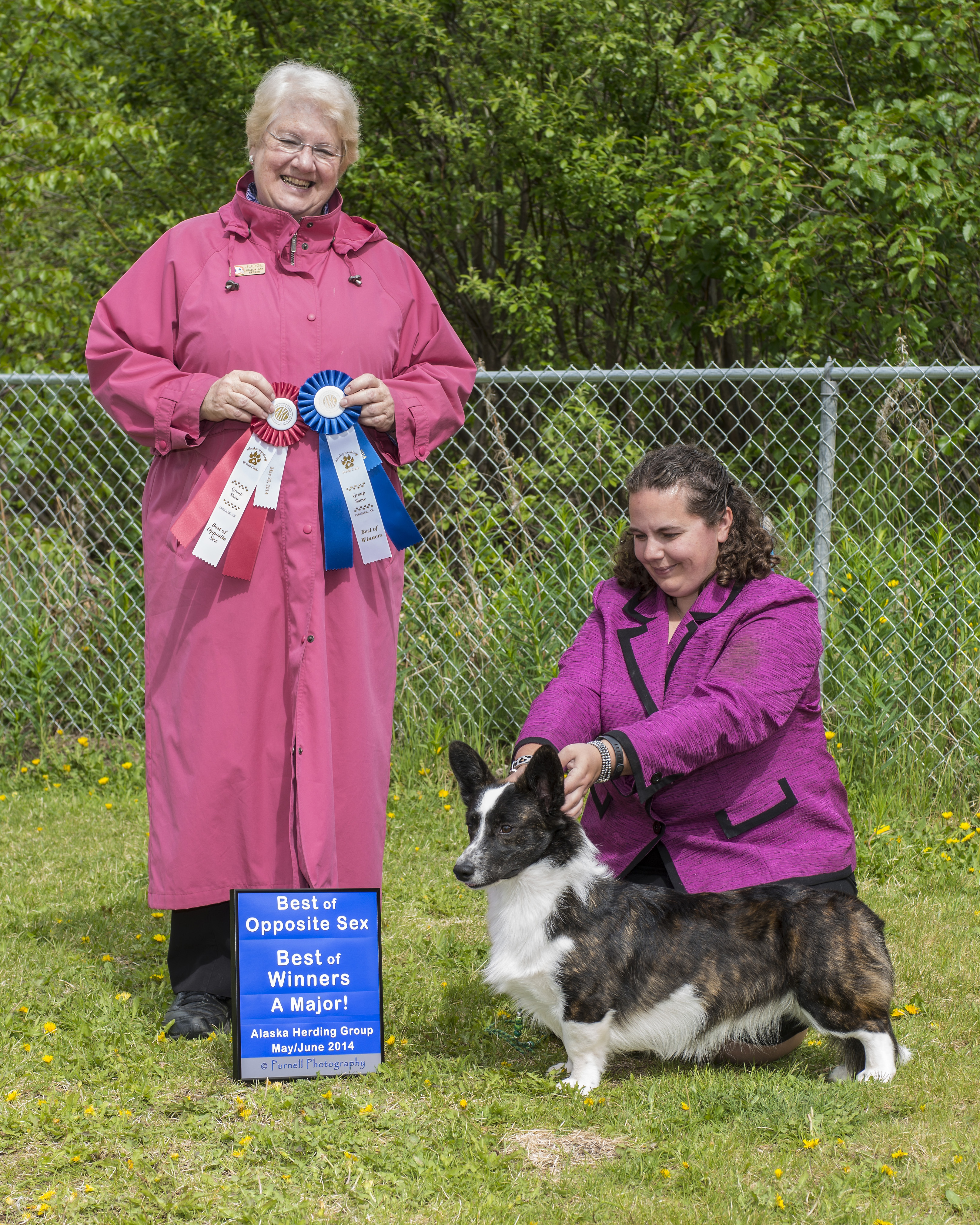 Gable (Allegro Grandiose Frankly My Dear) shown winning Winners Dog/Best of Winners/Best of Opposite Sex (over Specials) for a 4 point major in May, 2014.