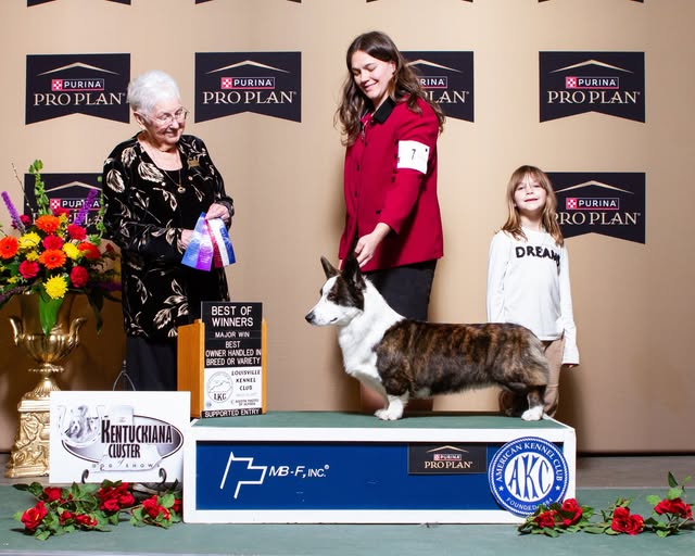 Our Cardigans compete in many arenas – mainly conformation shows at this time, but we have dogs titled in herding, obedience, rally, barn hunt, lure coursing (CAT and FastCAT), agility, and more. It’s hard to keep up with titles on the website, but we encourage you to follow us on facebook (@grandiosecardiganwelshcorgis) for more current updates on what our dogs are competing and titling in.